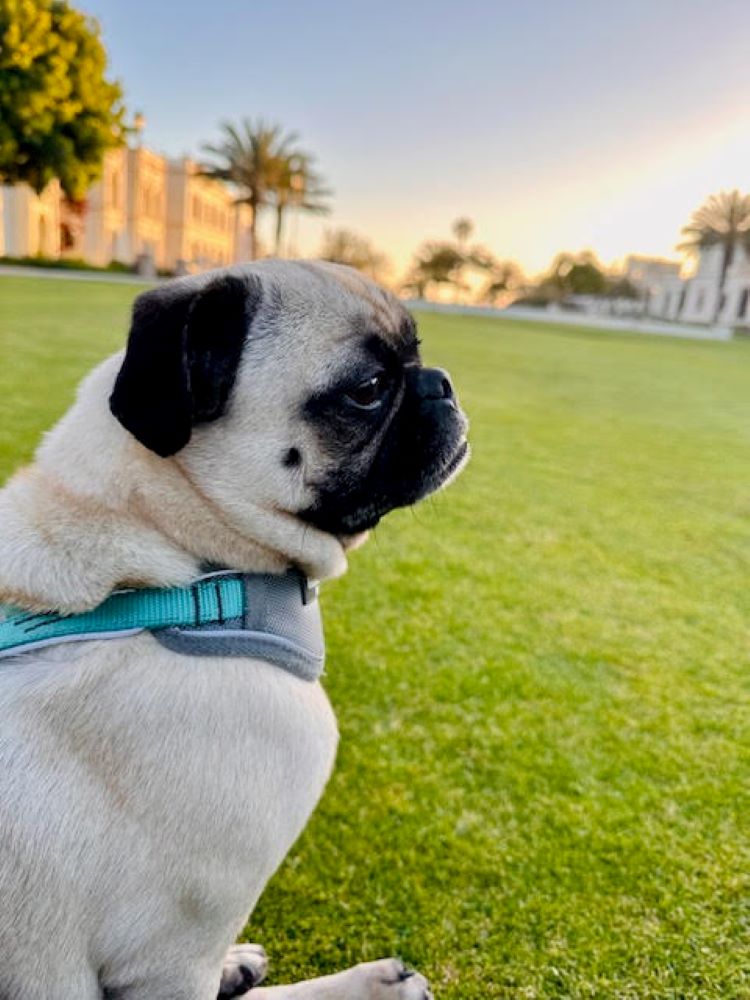 Bug is very respectful of boundaries, eager to please, responsive to direction, and is very well behaved with both dogs and humans. He has really good sleep hygiene and will "head to bed" at around the same time every night and loves being tucked in with his favorite blankets and toys. Bug's ideal owner is someone experienced with caring for special needs pugs and is familiar with giving a little extra love and care.
