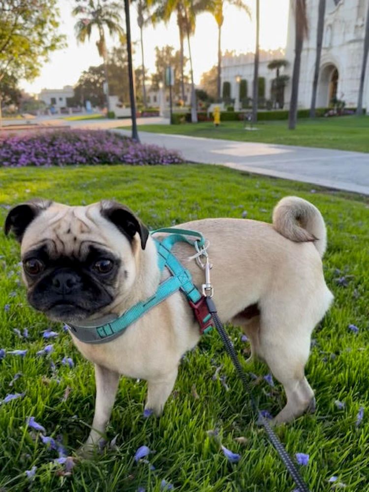 Description: Bug is a sweet, affectionate, and cuddly 4 year old male pug. He is neutered and up to date on his shots. Bug, or "Buggy" is a love bug that has a relaxed temperament and is very easy going.