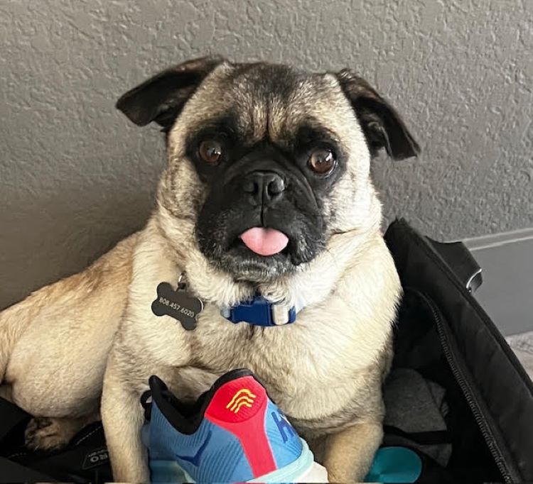 Do you want me to rearrange your shoes, so matching pairs are in different rooms? I got your back! Oh! You sat down! Perfect, now I can sit on your lap. Why thank you, I will gladly accept belly rubs! Wait, did you grab the leash? Heck yeah! I would love to go for a walk! I like to smell everything.
