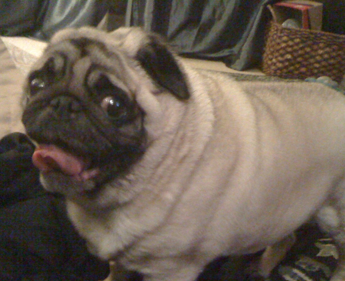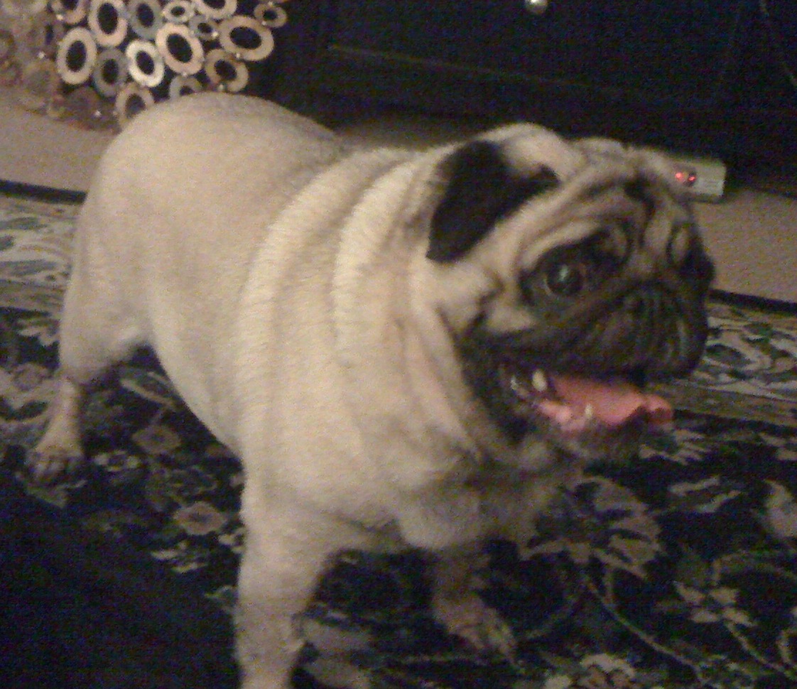 Description: This is Peaches! Peaches comes to Pug Rescue from an unfortunate situation and her owner could no longer care for her. She has been very overfed and needs to lose some weight, and she is still getting accustomed to her foster home. Peaches is not used to having lots of space to move around in, and she is still most comfortable in small, tight spaces. Peaches is currently sleeping in the closet in her foster home - by choice. We are hoping with time she will become comfortable sleeping on the bed, where Pugs are supposed to be! Peaches has had her teeth cleaned and 19 of them were pulled because they were so rotten. She is currently eating only soft food, but once her mouth heals, she should be able to handle kibble with no problem. Peaches' foster mom is working diligently with Peaches to get her used to going out and about on walks, and has been working on teaching Peaches some basic obedience. Peaches is a smart girl and is learning fast. Peaches is very good on the leash and is potty trained, and is very talkative when it's mealtime. This girl LOVES her breakfast! Peaches gets along great with her foster pug sibling, and she loves to play with toys. She is an all around sweet little girl, who just needs a home that will help her be more comfortable in the world. Peaches will surely make a great companion, wouldn't you like to add this girl to your family? |
