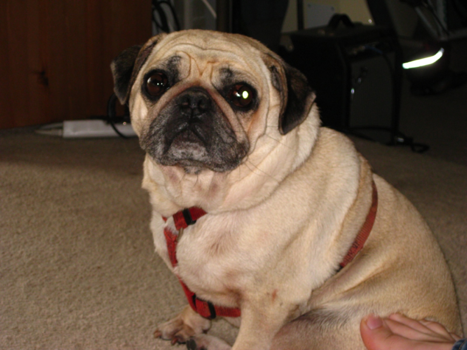 Description: Meet Shep! Shep comes to Pug Rescue from a family that simply did not have enough time or energy for him. Shep is a super snuggler and loves people! He loves for his foster parents to get on the floor and just join in a Pug snugglefest! Shep gets along well with other dogs and has lived with small children so he's used to the type of activity and motion that goes along with toddlers. Shep is also a big fan of taking walks, so if you're looking for an exercise partner, here's your guy! He's potty trained, and will sleep in a crate if you ask him to, although he did try to climb over a gate in the kitchen. Shep does have some skin allergies, so he will try to scratch his back legs, which results in some spinning. He can be stopped and calmed down. We are trying to figure out what he is allergic to so we can find a way to help him stop itching. Shep is a great guy who would really love someone to call his own. He will follow you around and give you all the Pug love you could want! Why not make Shep part of your family this holiday season? |
