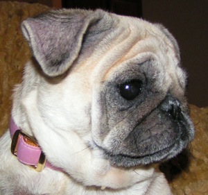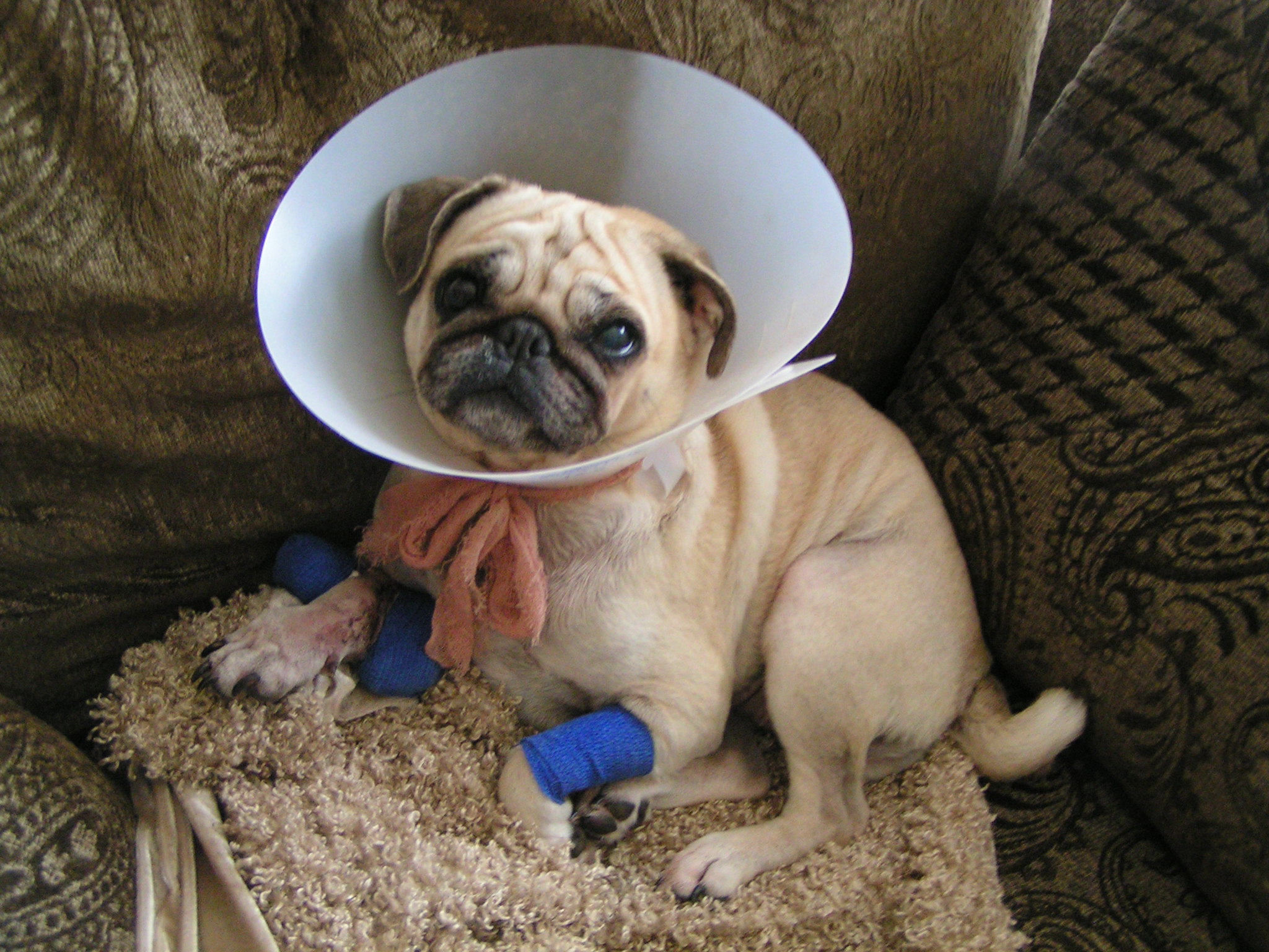 Description: ***AVA IS CURRENTLY RECOVERING FROM SURGERY AND NOT AVAILABLE FOR ADOPTION AT THIS TIME***** Meet little Ava. Ava comes to Pug Rescue from a shady past, and luckily she found her way to us so that we could take care of her and help her have a better life. Yes, she is only two years old. The grey in her face is surely from poor nutrition, stress, and from being in constant pain. At some point, her front leg was badly injured, but she was not taken to the vet. Instead, the leg healed on it's own, and is now twisted and painful. She is also blind in one eye, because of an injury that was not tended to. Ava had her first surgery the day before Thanksgiving, and our wonderful orthopedic surgeons were able to repair about half the damage to her leg. At this point, we will have to let her heal from this surgery, see how she does on the leg, and then evaluate whether or not she will need a second surgery to get her leg useful. We really are hoping this surgery will decrease, if not eliminate, the pain in Ava's leg. Poor little girl, she did not deserve this. Because of her history, Ava is very fearful and timid, but very sweet and loving once she gets comfortable with you. Right now she is in a loving, dedicated foster home while she recovers from her surgery. She loves her foster mom, and is getting more and more confident every day. Ava's surgery comes at the end of the year, at a time when our funds are traditionally low. We need to raise money to pay for Ava's life changing surgery, which will cost somewhere around $2,000. Perhaps you can find it in your heart to donate on behalf of little Ava? Even just the cost of a cup of coffee? It is our hope that she will recover and go on to live a long, pain free, and happy life. We're depending on you to help us help Ava. Ava is not available for adoption at this time, her recovery from surgery will be about six weeks. She will be available to meet families once she is fully recovered, if she doesn't require a second surgery. Thank you for helping Ava. Update 2/20/11 - Miss Ava will be having a second surgery on her foot. The first surgery was not as successful as we had hoped it would be, so back this sweet girls for a second surgery. She's so patient and sweet, and will happily accept extra biscuits and snuggles during her recovery.