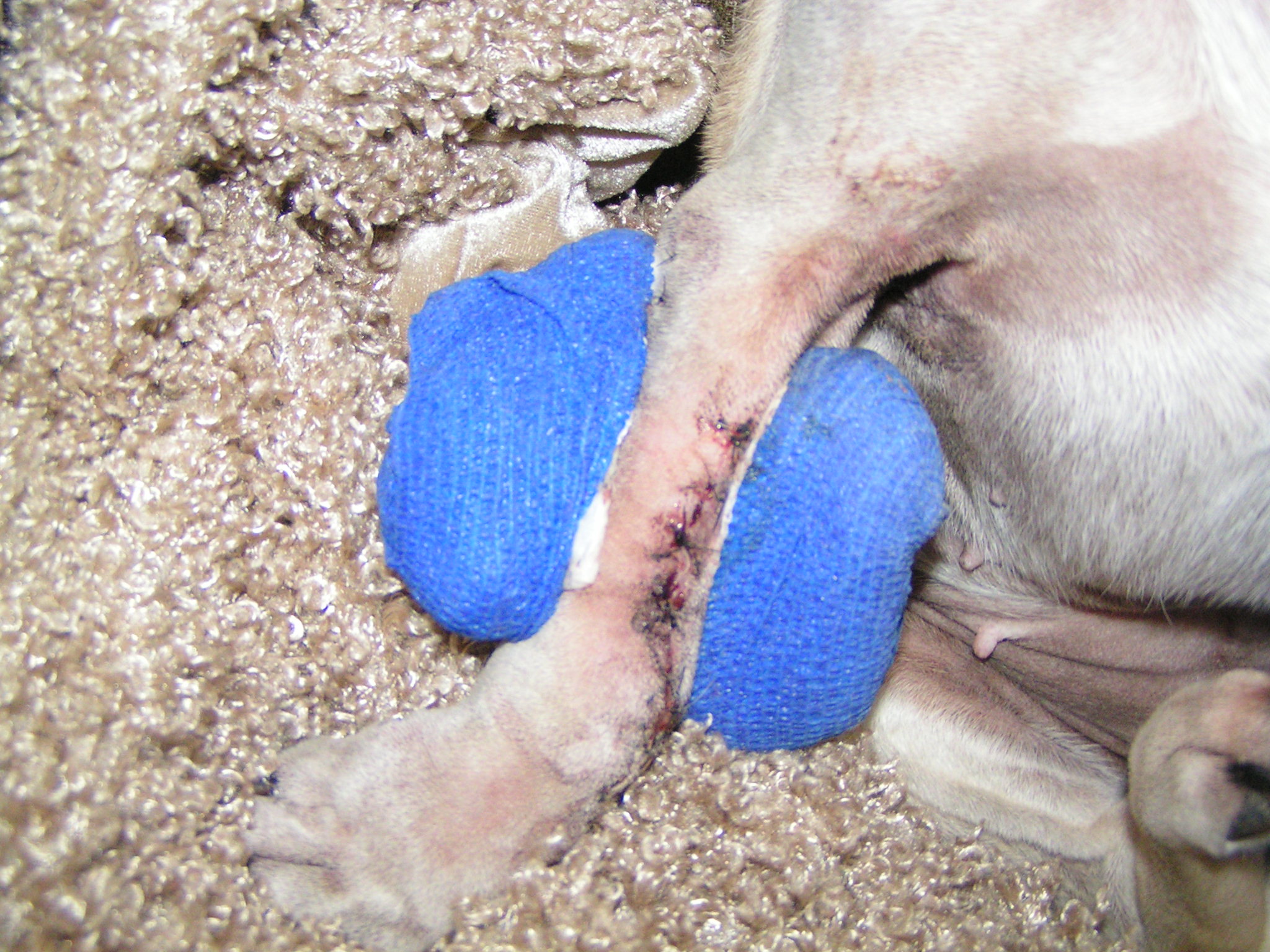 Update:2/24/11- Precious Ava had her second surgery on 2/22/11. The leg has been reconstructed using external fixators. They also discovered that she had pneumonia. She is now home recovering. It will be another ten weeks or so until she chooses her forever home. The wonderful staff at Pet Emergency Center fell in love with her sweet spirit. They didn't want to let her come home! Ava has started her physical therapy at Tinassy's K9 Splash R Cise (4/20/11). Tinassy's has graciously donated their services to help Ava regain the full use of her leg after the many months of confinement. Tara, co-owner of Tinassy's, said Ava is a natural at the swimming. Thank you so much Tinassy's for helping this girl with the rehab in her long journey to her forever home. Ava has been adopted by a wonderful senior who just lost her elderly blind diabetic pug. Miss Ava will surely be cherised and pamered as she so deserves! |