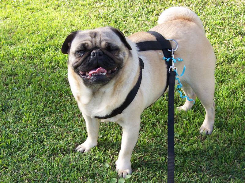 Description: Meet Jade! This little lady was relinquished to San Diego Pug Rescue by her owner, because they could no longer look after her. Our five year old, fuller figured friend weighs in at about 26 lbs and could probably stand to lose a couple of pounds, but aside from that she's in great health! Jade is a very cheerful pug with a playful disposition. This well mannered girl gets along great with fellow pugs, is always up for a good game of fetch and loves to go on walks! Not only is Jade house trained, but she greets everyone she sees with tail waging and an abundance of kisses. If you're looking for a companion that will warm your heart and fill your house with joy then contact us for more information about Jade! |