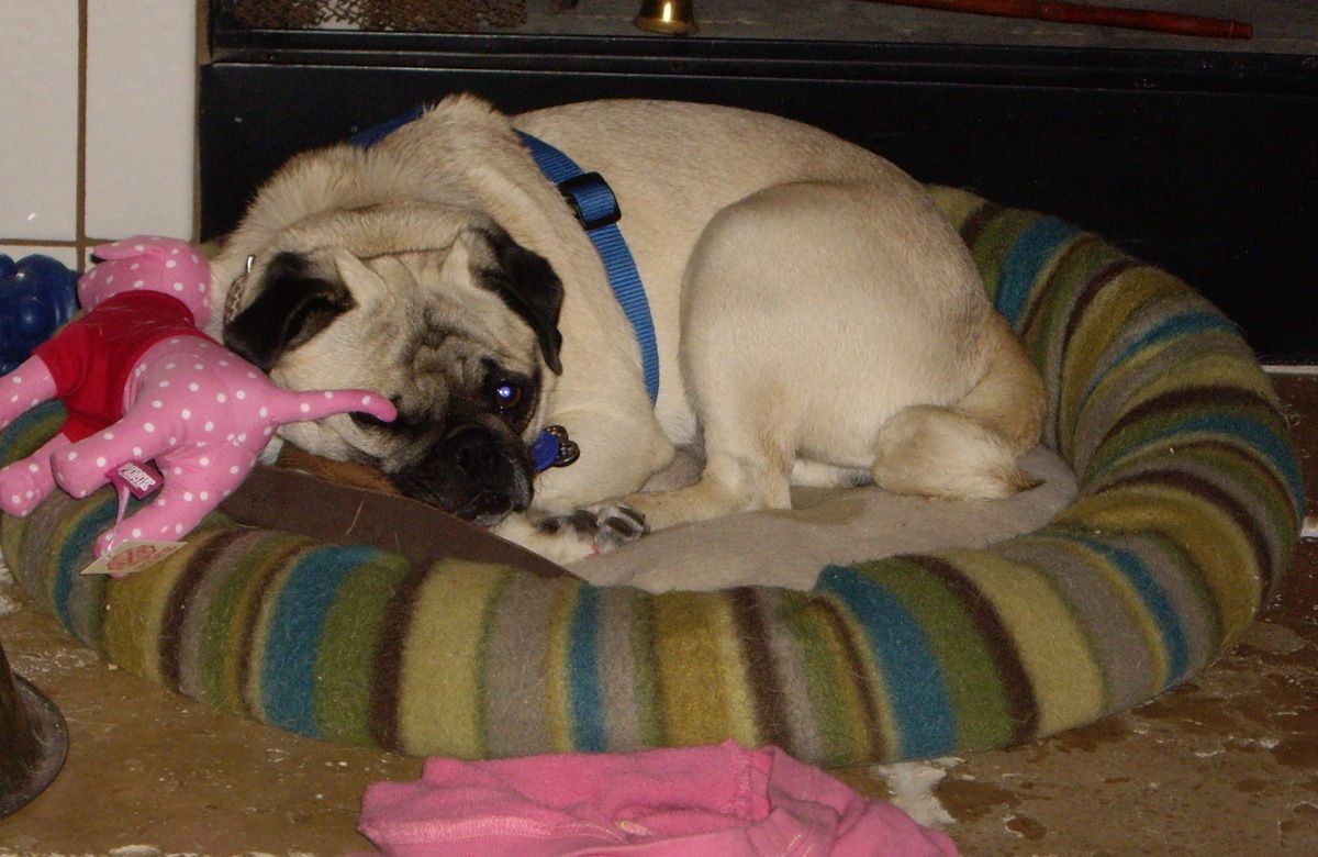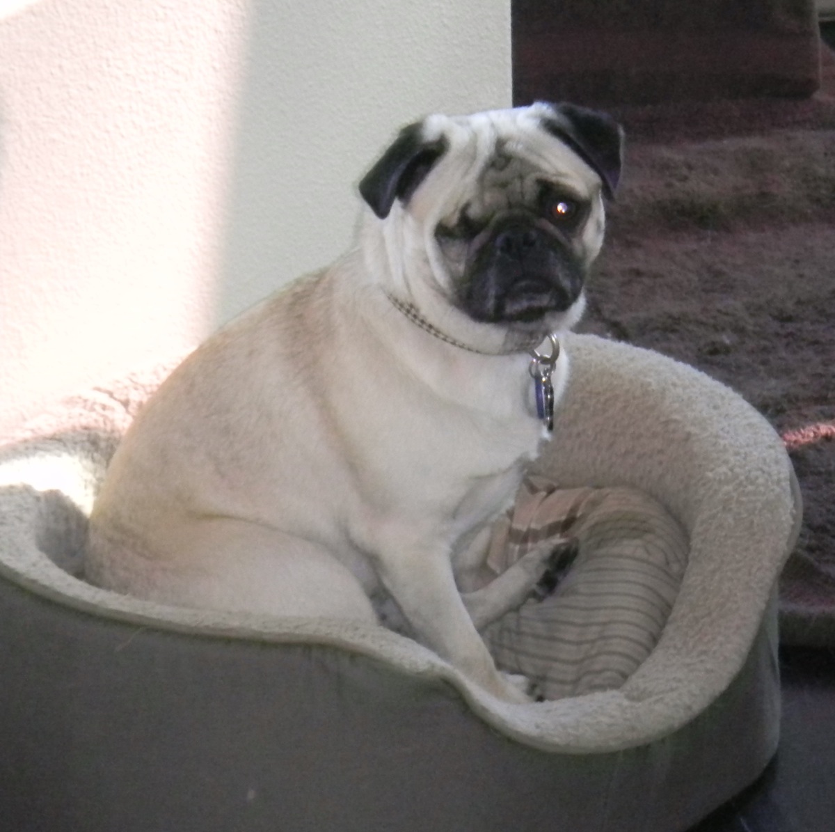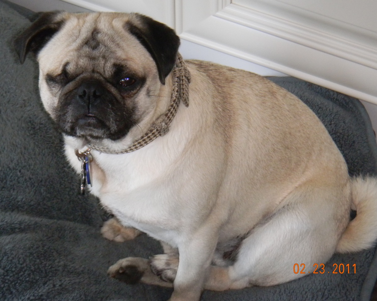 Description: Say hello to little Winnie. Winnie comes to Pug Rescue from a rather round a bout journey - this little girl is tired of moving around and would really like to settle into a forever home. Winnie was found as a stray in San Francisco, and she was obviously nursing a litter of puppies, but they were never found. While at the shelter, her right eye became badly infected and was removed. What a stressful experience for this sweet girl. Winnie was adopted on Christmas Eve by a wonderful person who was concerned Winnie was going to be euthanized because she was not eating or drinking. Despite all efforts, Winnie did not get along with the resident two small dogs. Winnie then moved in with her adopter's mother, but she didn't do so well there, either. The decision was made to bring Winnie here to Pug Rescue, with the hope of finding her a wonderful home where she will fit in and be cherished forever. Winnie is a sweet girl, but she is understandably a bit timid these days, all of the trauma she has suffered has made her a little unsure of the world. We've learned that she does not get along well with dominant females, but so far has been fine with the more submissive female in her foster home. She can be a little protective of toys and chewies with other dogs, and loud noises or raised voices make her shake, tense up, and get low to the ground. Winnie does love to go for walks, and does very well when her foster sister goes with her - so we are thinking that Winnie would do best as an only dog but might also do very well with a canine companion that is easy going, happy, and friendly. Winnie needs to learn that the world is a safe place, and that she really is a lovable girl. Because of her missing eye, her depth perception is a bit off, so she is a bit hesitant with stairs or jumping off the couch, but once she is comfortable in her home, she should become more confident. She happily sleeps in a crate, or will stay in one when she is alone with no problem. Winnie is in great health and fairly well potty trained. She's had a few accidents while settling in to her foster home, but that's understandable, given all the upheaval in her life recently. We've also learned that Winnie is a toy hoarder! She loves to go around the house and collect toys and clothes and take them all to her bed. She doesn't chew anything up, just collects it all. How cute is she! We'd really love to see Winnie find a wonderful forever home, so if you think this girl is one you'd like to add to your family, contact us to learn how to meet her. |